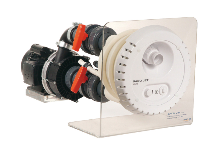 De är perfekta för eftermontering i alla pooler. Badglädjen och attraktionen ökar i proportion till tiden med Badu Jet. De drivs med spänningen 230 eller 400 V. När du slår på startar regleringen av lufttillförseln från poolen.