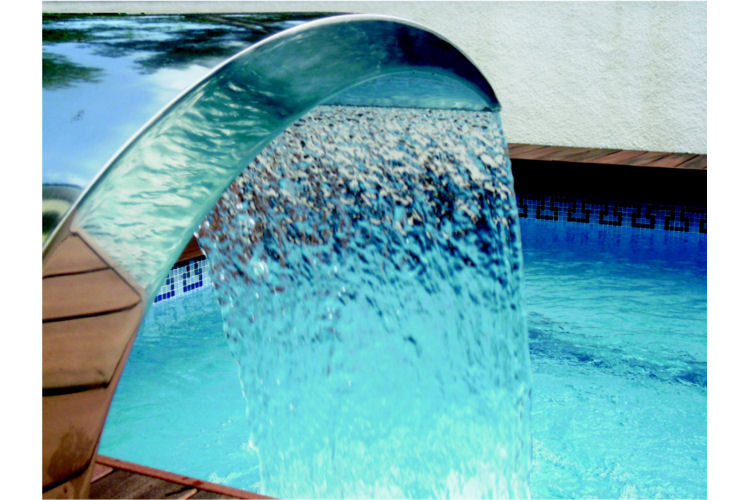 Pipor och duschar ger en ström av vatten som både är en massage och en visuell höjdpunkt i din pool. Alla stålkomponenter kräver särskilt underhåll för att förhindra att stålet försämras. De måste vara jordade. Det rekommenderade genomsnittliga flödet anges, vilket kan minskas eller ökas beroende på önskad effekt.