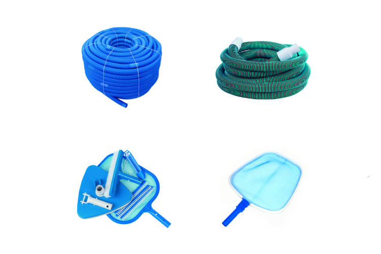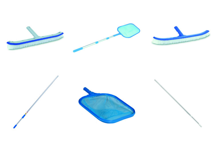 Den värms upp av solen, en växlare eller en solfångare. Det behövs dock några fler saker för att hålla vattnet skinande i solens strålar och för att hålla botten och väggarna i poolen rena.