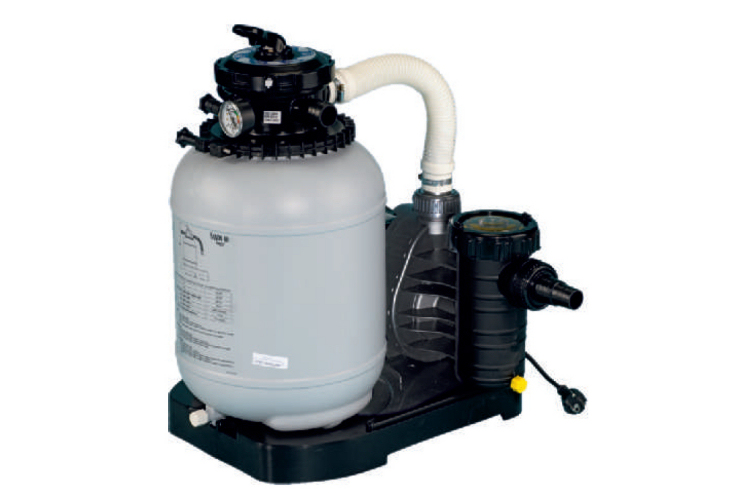 Filtertanken placeras på en estetisk bas, tack vare vilken filteraggregatet med pumpen enkelt kan placeras på golvet och enheten fungerar ordentligt. Sandbyte vartannat år. Dessa filter bör monteras i princip runt poolen.