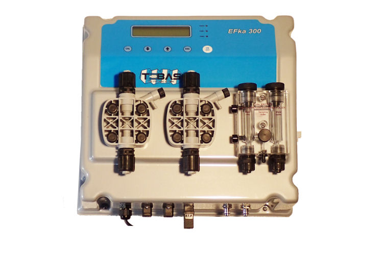 Tebas-Economic EFka300 pH / Rx är ett kompakt system, enkelt att installera och använda, vilket gör att du kan övervaka och kontrollera pH- och redoxpotentialnivån i poolen. Enheten innehåller en Digital styrenhet som fungerar enligt förinställda tröskelvärden, två membranpumpar med ett flöde på upp till 10 l / h på enheten, en ingång för en nivåsensor och suglanser, pH och redoxelektroder med BNC-kontakt placerad i oblipsen. och handtag.