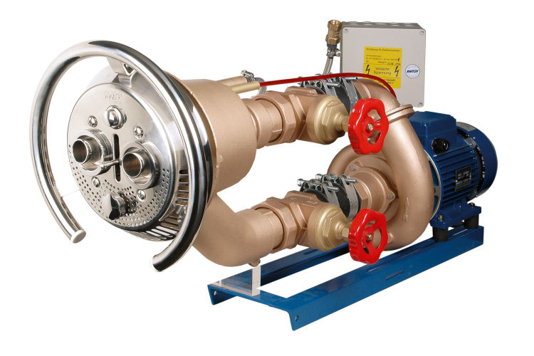 Enhet med monterad piezo- eller pneumatisk omkopplare, vatten- och luftflödesregulator. Pump med en effekt på 2,6 kW, 400 V, kapacitet 63 m3 / h, vattenströmens hastighet 1 meter framför munstycket är 2 m / sek.