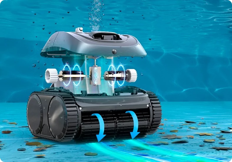 Intelligent navigering tillhandahålls av ett 6-axligt gyroskop och en djupsensor – enheten anpassar sig till poolens form och lämnar inga orenade områden. Tre kraftfulla motorer säkerställer stabil rörelse och kraftfull sugkraft, medan ett 180 μm filter effektivt fångar upp även det minsta skräpet.